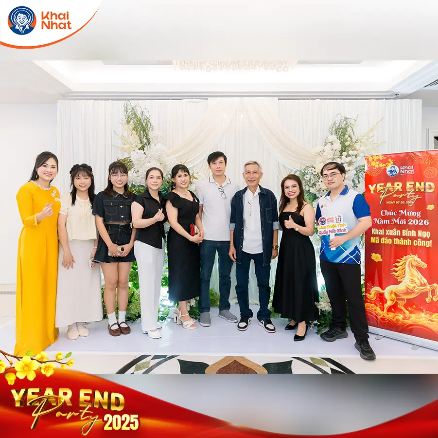 Trong không khí rộn ràng của những ngày cuối năm, Khai Nhật đã tổ chức đêm tiệc Year End Party 2025 với sự hội tụ của toàn thể các thành viên công ty. Buổi tiệc là dịp để tất cả chúng ta chậm lại một nhịp, cùng nhau nhìn lại hành trình 2025, một chặng đường không thiếu thử thách nhưng cũng đầy những khoảnh khắc khó quên. Mỗi đóng góp, mỗi sự cố gắng thầm lặng của từng thành viên đều đã góp phần tạo nên một tập thể Khai Nhật đoàn kết, bền bỉ và không ngừng tiến bước.